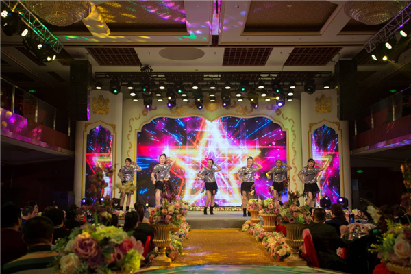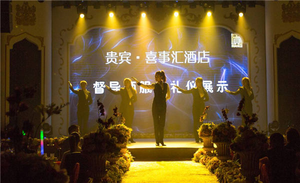 總結大會結束后,喜事匯婚慶的督導服務禮儀展示拉開了文藝聯(lián)歡晚會的序幕。