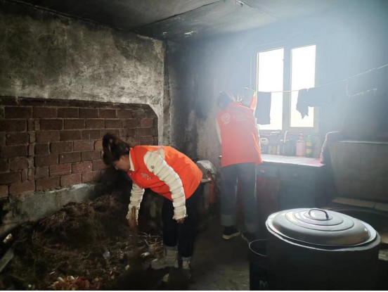 2.興隆村,高齡困境老人石秀玲家,老人已經(jīng)85歲了,還患有腿疼、心臟病、眩暈癥、高血壓,需要常年吃藥維持生命。老人有兩個兒子,老大楊樹發(fā),患有精神障礙一直沒有結(jié)婚,一直由這位可憐的母親來照顧,有時犯病還會毆打母親。還有另外二兒子年輕喪偶,常年待在外地打工。從沒有回來看望過老母親。家里面一片陰霾,我們的到來猶如一絲光,給他們帶來了慰問物資,還幫助老人收拾屋子打掃衛(wèi)生。老人許久沒有出現(xiàn)的笑容也映在了臉上。
